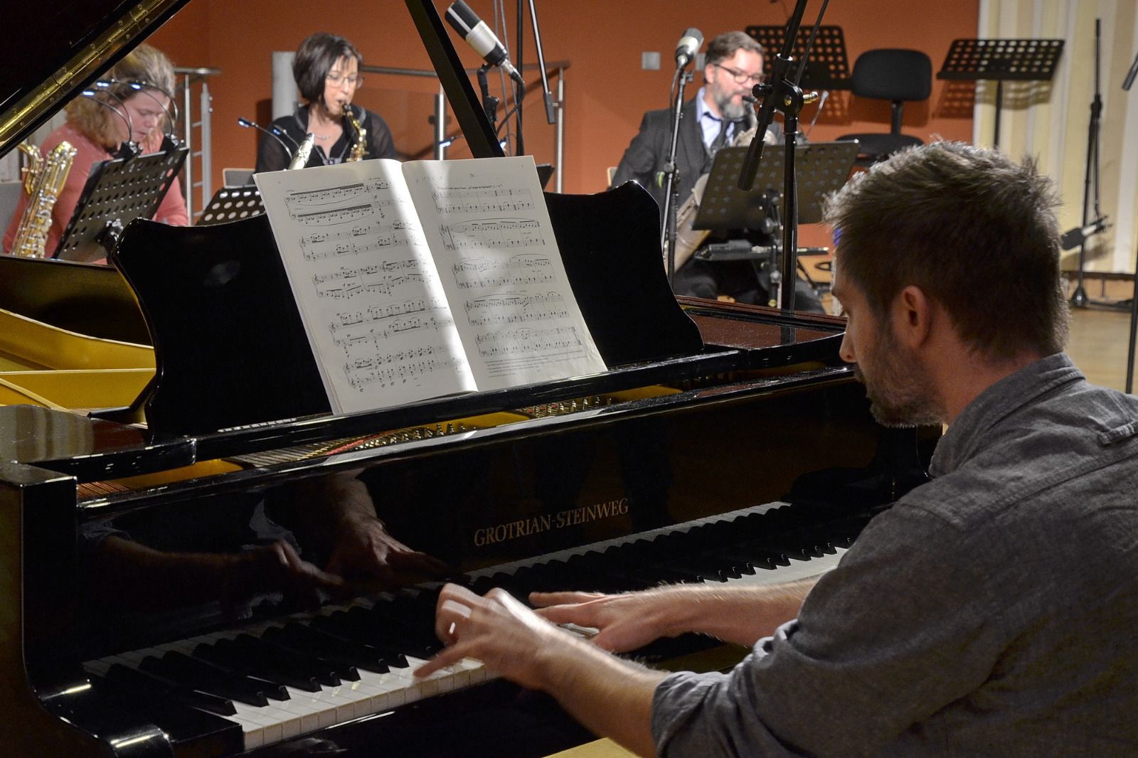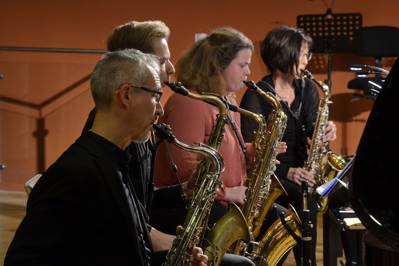 Das Konsaxtett von Thomas Walter Maria (Saxophonquintett des Konservatoriums) spielt eigene Filmmusik-Arrangements und verarbeitet die "Musica ricercata" von Ligeti gemeinsam mit dem Jazzmusiker Marius Moritz am Klavier.